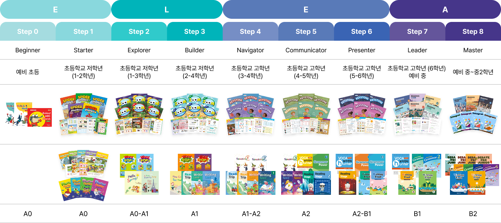 • 주제 및 문법을 레벨에 따라 심층적으로 확대해 나가는 Step by Step 접근법을 기반으로 구성